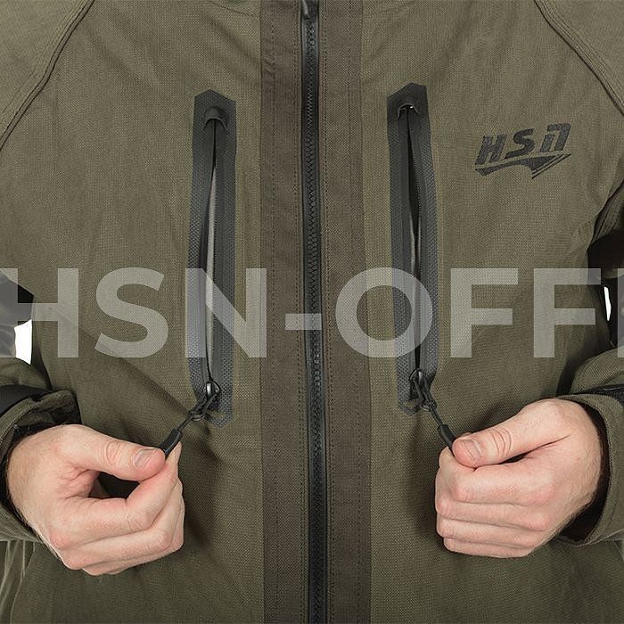 Удобное расположение карманов на влагозащитных молниях. Боковые карманы на куртке защищены плотным влагозащитным клапаном.