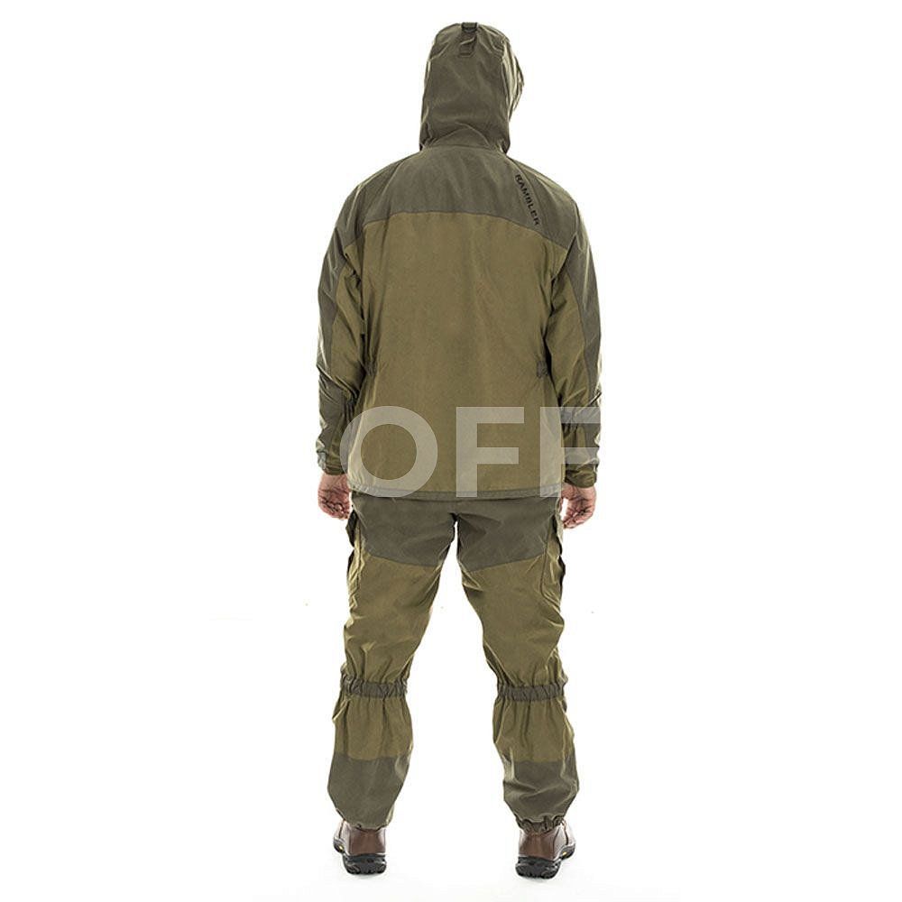 Костюм RAMBLER выполнен из мягкой, бесшумной ткани Islandiya с отличными ветро- и влагозащитными свойствами, а также повышенной износостойкостью. У костюма нет утеплителя, подклад — флис.