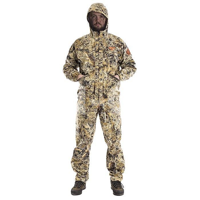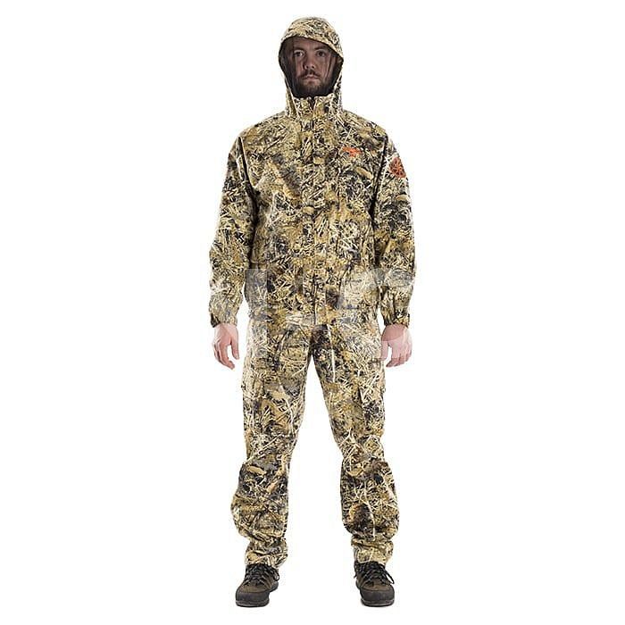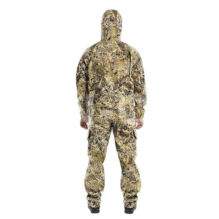 Изготовлен из специальной ткани с содержанием хлопка (35% пэ и 65% хб) с пич эффектом. Инновационные камуфлированные рисунки идеально маскируют охотника в любой местности.