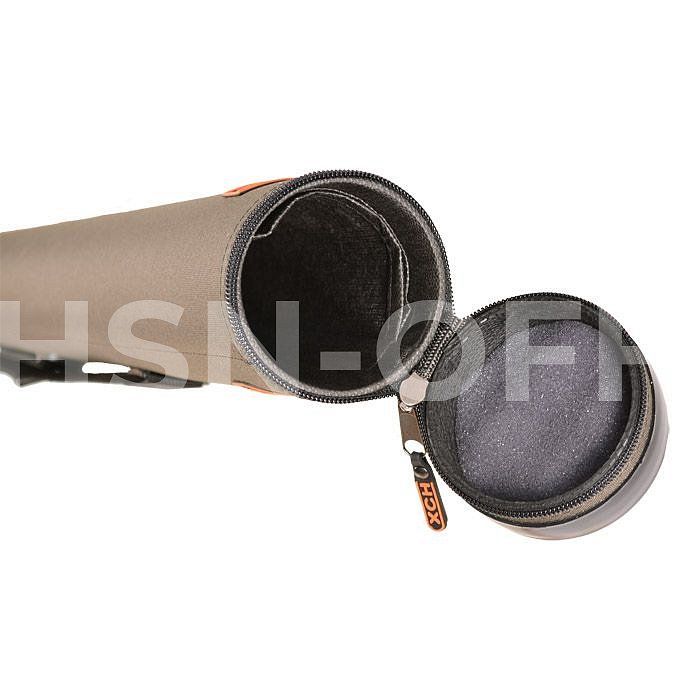 Сделан из пластмассовой трубы, обтянутой тканью Oxford(водостойкая). Внутри и по бокам обклеена ППУ 2 мм. Оба конца закрыты специальными заглушками. В производстве применяют итальянскую фурнитуру, почти не звенящую и не бликующую, а раскрой изделия выполняется на специальном для этого оборудовании, что обеспечивает отличное качество. Для более удобного переноса в конструкции тубуса предусмотрен ремень на плечо и ручка.
